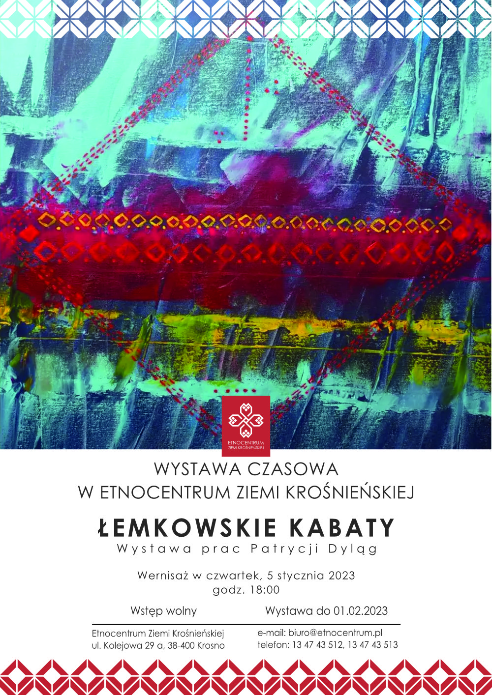 Wernisaż wystawy „Łemkowskie Kabaty” odbędzie się 5 stycznia 2023 o godz. 18:00 w Galerii wystaw czasowych w Etnocentrum. Udział bezpłatny.