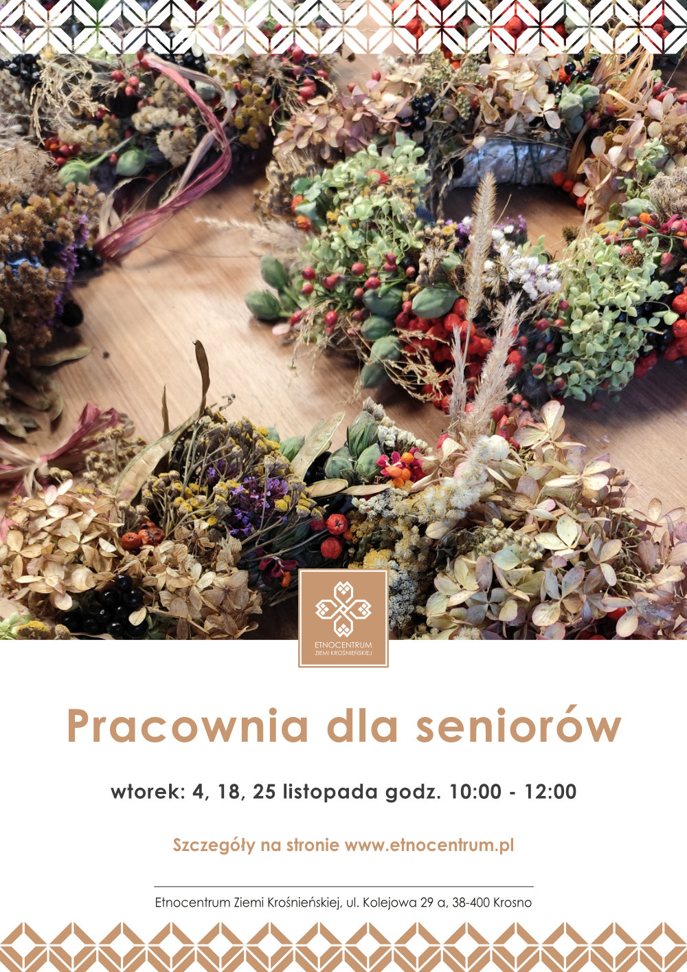 -> Pracownia dla seniorów (60+) – wtorki o 10:00 (4, 18 i 25 listopada) – zajęcia dla dorosłych