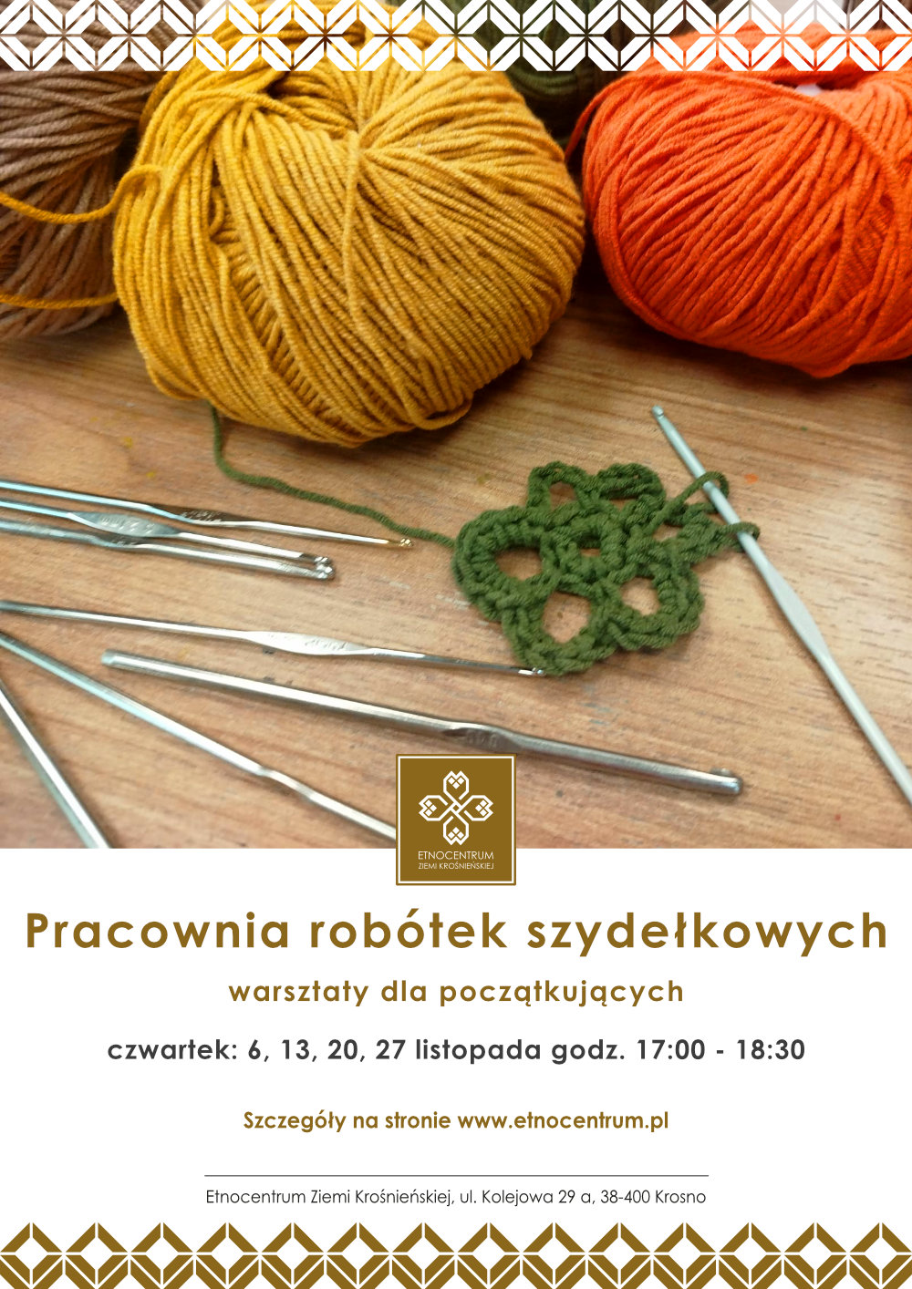 -> Pracownia robótek szydełkowych dla początkujących– czwartki o 17:00 (6, 13, 20 i 27 listopada) – zajęcia dla dorosłych