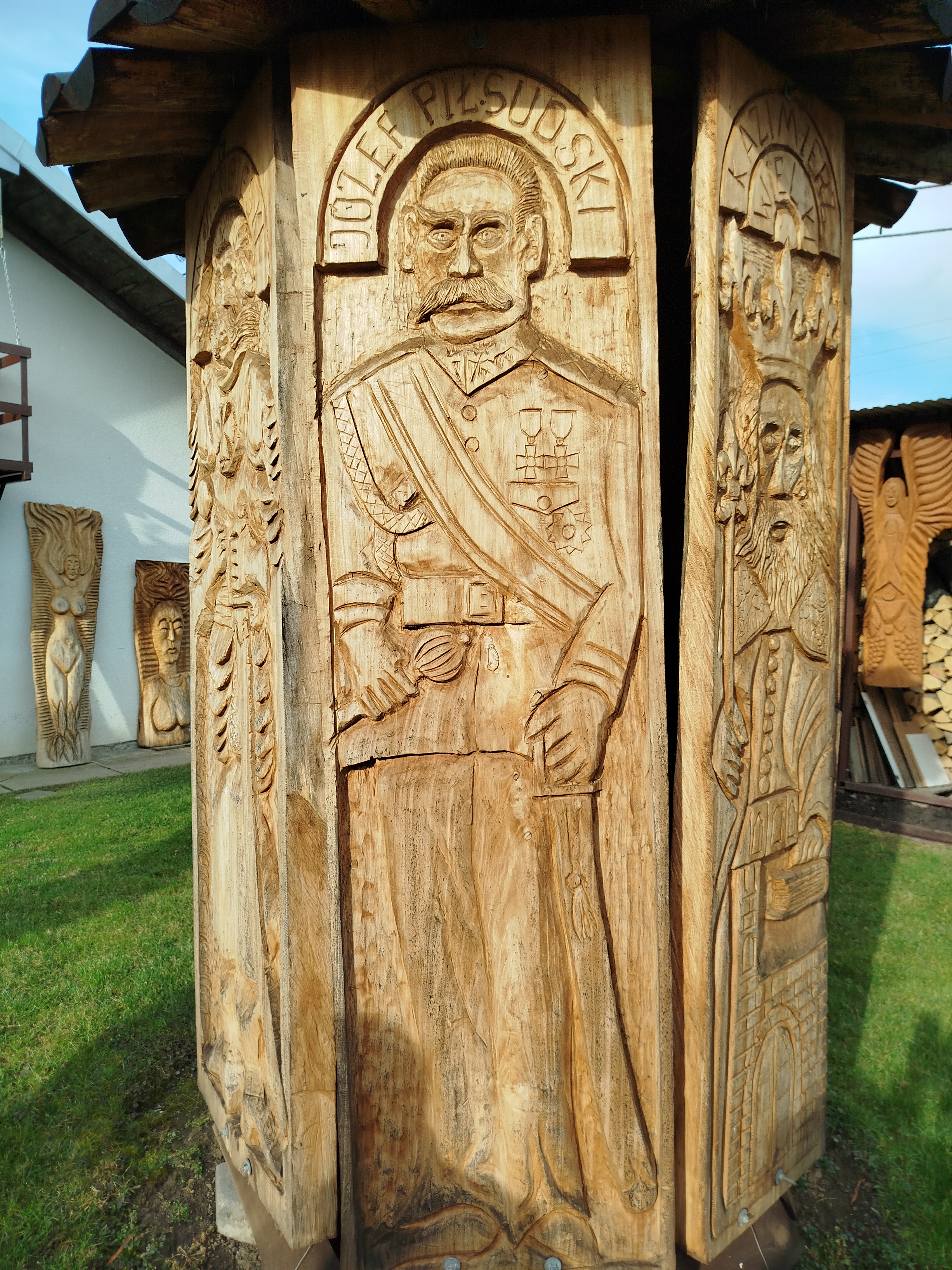 Domowy ogród Piotra zdobią rzeźby monumentalne, przedstawiające postacie świętych, królów i bohaterów narodowych takich jak Mieszko I, Bolesław Chrobry, Władysław Jagiełło, Jan III Sobieski, Kazimierz Wielki, Józef Piłsudski no i oczywiście św. Jan Paweł II. Jak mówi twórca tych dzieł, pasjonat historii „to kluczowe postacie naszej państwowości”.