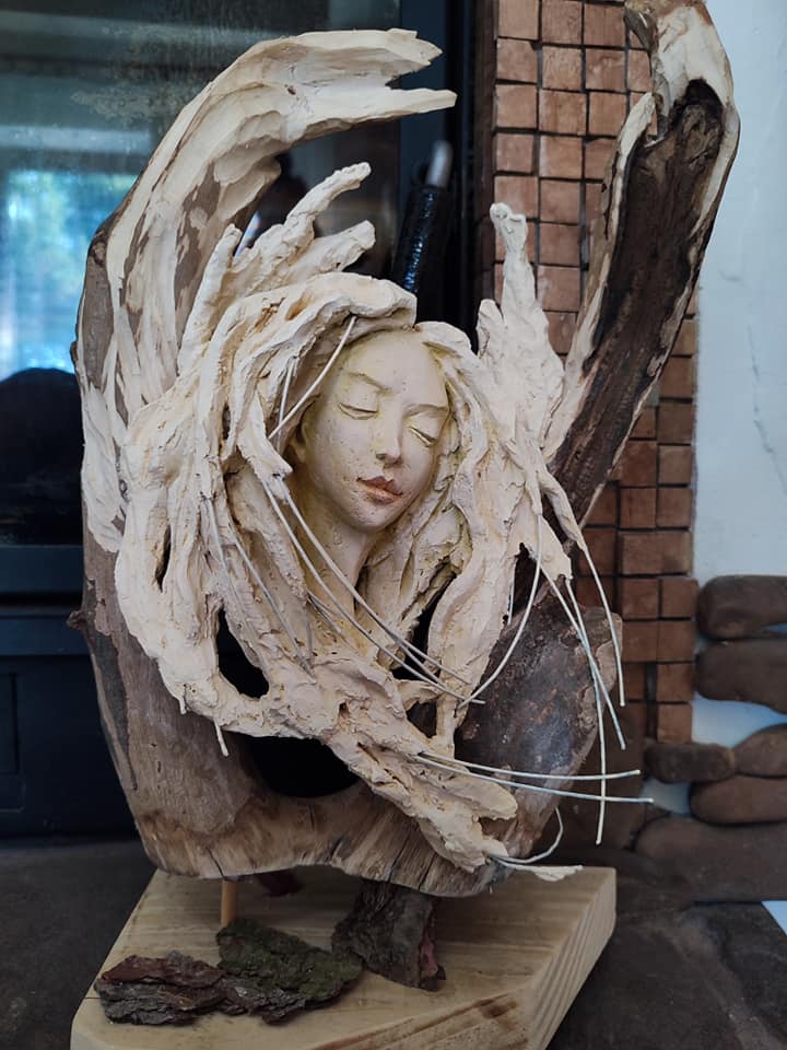 Poza malarstwem, Pan Jerzy kocha drewno i pracę z nim. Jego twórczość zaczęła się od rzeźby. Szczególnym zainteresowaniem darzy korzenie drzew, ich wymyślne kształty i fakturę. To właśnie one stanowią fundament dla jego rzeźb. Artysta najczęściej „wpisuje” w nie sylwetki aniołów stanowiących kolejny ulubiony motyw w jego twórczości.